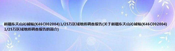 大家好,新疆东天山沁城幅,K46C0020041/25万区域地质调查报告,关于新疆东天山沁城幅,K46C0020041/25万区域地质调查报告的简介很多人还不知道,现在让我们一起来看看吧!