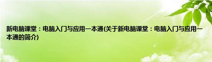 本文关于新电脑课堂:电脑入门与应用一本通的简介就讲解完毕,希望对大家有所帮助。