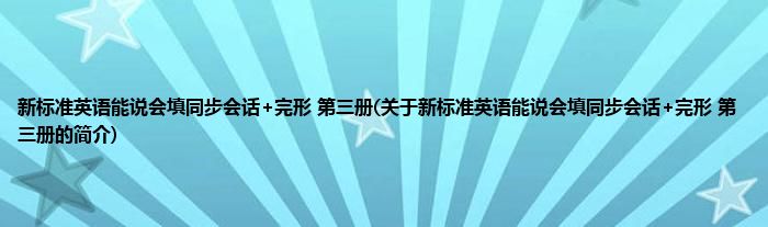 本文关于新标准英语能说会填同步会话+完形 第三册的简介就讲解完毕,希望对大家有所帮助。