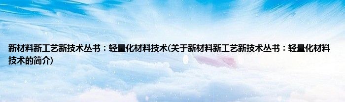 本文关于新材料新工艺新技术丛书:轻量化材料技术的简介就讲解完毕,希望对大家有所帮助。