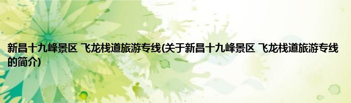 大家好,新昌十九峰景区 飞龙栈道旅游专线,关于新昌十九峰景区 飞龙栈道旅游专线的简介很多人还不知道,现在让我们一起来看看吧!