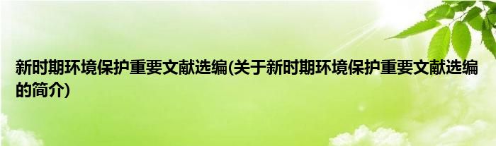 大家好,新时期环境保护重要文献选编,关于新时期环境保护重要文献选编的简介很多人还不知道,现在让我们一起来看看吧!