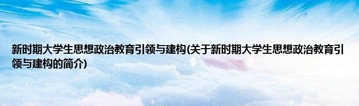 本文关于新时期大学生思想政治教育引领与建构的简介就讲解完毕,希望对大家有所帮助。