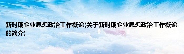 本文关于新时期企业思想政治工作概论的简介就讲解完毕,希望对大家有所帮助。