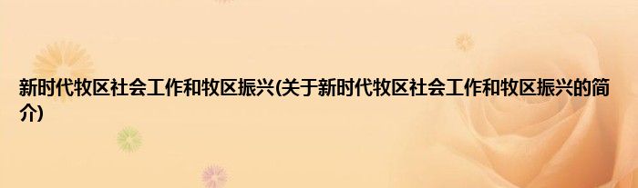 大家好,新时代牧区社会工作和牧区振兴,关于新时代牧区社会工作和牧区振兴的简介很多人还不知道,现在让我们一起来看看吧!
