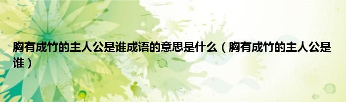 大家好,小科来为大家解答以上问题。胸有成竹的主人公是谁成语的意思是什么,胸有成竹的主人公是谁很多人还不知道,现在让我们一起来看看吧!