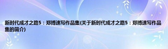 本文关于新时代成才之路5:郑博速写作品集的简介就讲解完毕,希望对大家有所帮助。