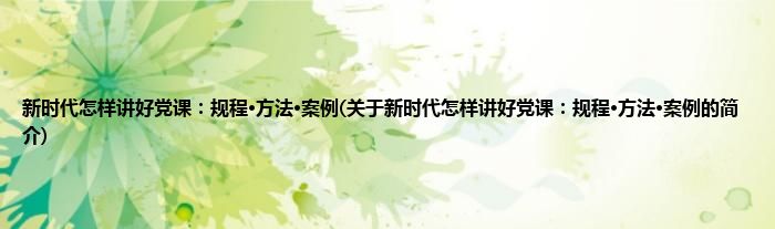 本文关于新时代怎样讲好党课:规程·方法·案例的简介就讲解完毕,希望对大家有所帮助。