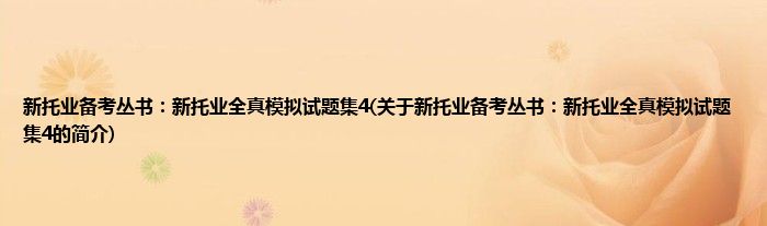 本文关于新托业备考丛书:新托业全真模拟试题集4的简介就讲解完毕,希望对大家有所帮助。