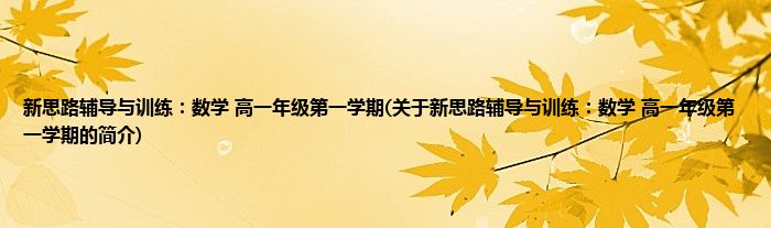 大家好,新思路辅导与训练:数学 高一年级第一学期,关于新思路辅导与训练:数学 高一年级第一学期的简介很多人还不知道,现在让我们一起来看看吧!