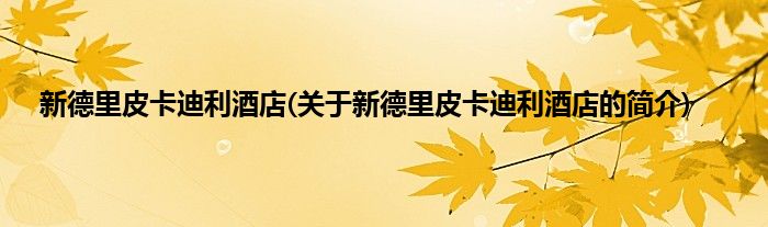 本文关于新德里皮卡迪利酒店的简介就讲解完毕,希望对大家有所帮助。