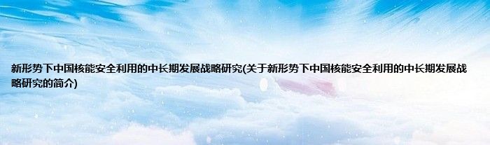 大家好,新形势下中国核能安全利用的中长期发展战略研究,关于新形势下中国核能安全利用的中长期发展战略研究的简介很多人还不知道,现在让我们一起来看看吧!