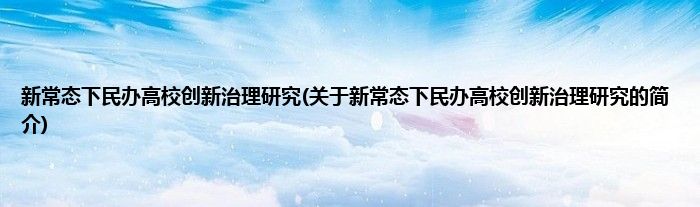 本文关于新常态下民办高校创新治理研究的简介就讲解完毕,希望对大家有所帮助。