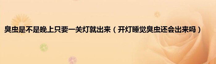 大家好,小科来为大家解答以上问题。臭虫是不是晚上只要一关灯就出来,开灯睡觉臭虫还会出来吗很多人还不知道,现在让我们一起来看看吧!