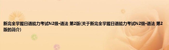 本文关于新完全掌握日语能力考试N2级·语法 第2版的简介就讲解完毕,希望对大家有所帮助。
