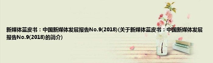 1、 《新媒体蓝皮书:中国新媒体发展报告No.9(2018)》是2018年7月1日社会科学文献出版社出版的图书,作者是唐绪军。