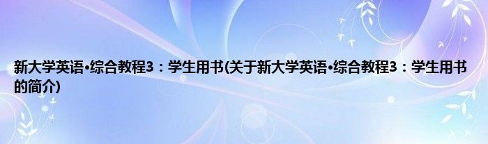 本文关于新大学英语·综合教程3:学生用书的简介就讲解完毕,希望对大家有所帮助。