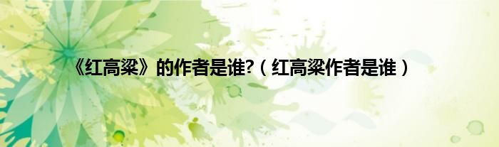 大家好,小科来为大家解答以上问题。《红高粱》的作者是谁?,红高粱作者是谁很多人还不知道,现在让我们一起来看看吧!