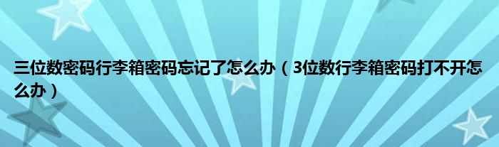 大家好,小科来为大家解答以上问题。三位数密码行李箱密码忘记了怎么办,3位数行李箱密码打不开怎么办很多人还不知道,现在让我们一起来看看吧!