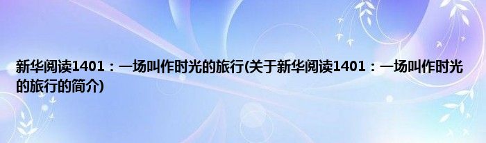 本文关于新华阅读1401:一场叫作时光的旅行的简介就讲解完毕,希望对大家有所帮助。