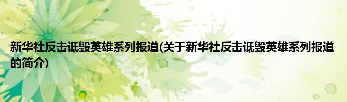大家好,新华社反击诋毁英雄系列报道,关于新华社反击诋毁英雄系列报道的简介很多人还不知道,现在让我们一起来看看吧!