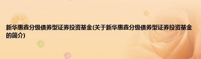 大家好,新华惠鑫分级债券型证券投资基金,关于新华惠鑫分级债券型证券投资基金的简介很多人还不知道,现在让我们一起来看看吧!