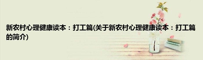 本文关于新农村心理健康读本:打工篇的简介就讲解完毕,希望对大家有所帮助。