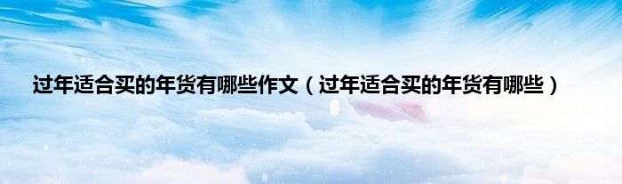 大家好,小科来为大家解答以上问题。过年适合买的年货有哪些作文,过年适合买的年货有哪些很多人还不知道,现在让我们一起来看看吧!