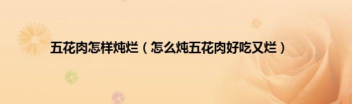 一、 怎么炖五花肉好吃又烂