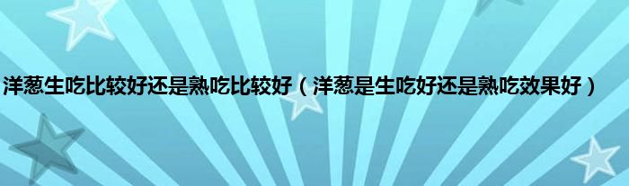 一、 洋葱生吃好熟吃好