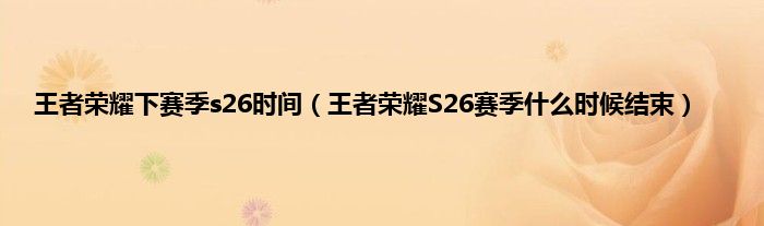 大家好,精选小编来为大家解答以上问题。王者荣耀下赛季s26时间,王者荣耀S26赛季什么时候结束很多人还不知道,现在让我们一起来看看吧!