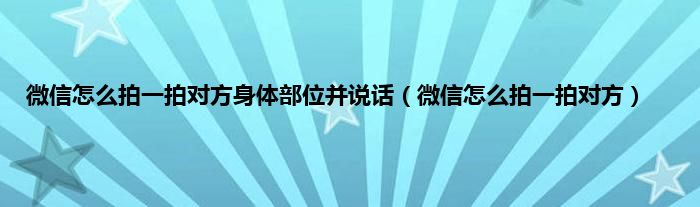 大家好,精选小编来为大家解答以上问题。微信怎么拍一拍对方身体部位并说话,微信怎么拍一拍对方很多人还不知道,现在让我们一起来看看吧!