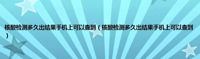 大家好,精选小编来为大家解答以上问题。核酸检测多久出结果手机上可以查到,核酸检测多久出结果手机上可以查到很多人还不知道,现在让我们一起来看看吧!