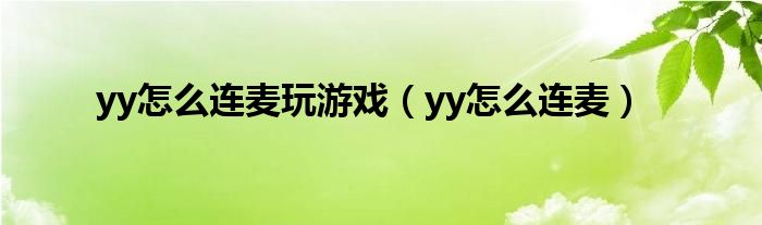 大家好,精选小编来为大家解答以上问题。yy怎么连麦玩游戏,yy怎么连麦很多人还不知道,现在让我们一起来看看吧!