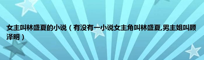 大家好,小常来为大家解答以上问题。女主叫林盛夏的小说,有没有一小说女主角叫林盛夏,男主姐叫顾泽明很多人还不知道,现在让我们一起来看看吧!