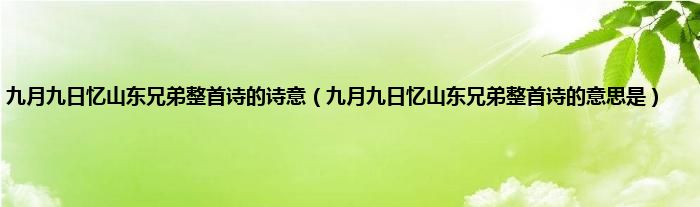 大家好,小常来为大家解答以上问题。九月九日忆山东兄弟整首诗的诗意,九月九日忆山东兄弟整首诗的意思是很多人还不知道,现在让我们一起来看看吧!