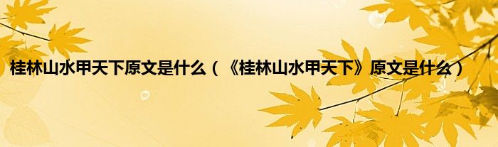 大家好,小常来为大家解答以上问题。桂林山水甲天下原文是什么,《桂林山水甲天下》原文是什么很多人还不知道,现在让我们一起来看看吧!
