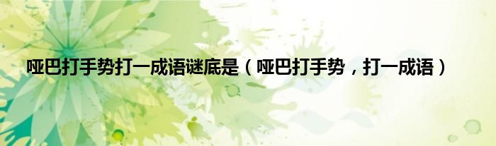 大家好,小常来为大家解答以上问题。哑巴打手势打一成语谜底是,哑巴打手势,打一成语很多人还不知道,现在让我们一起来看看吧!