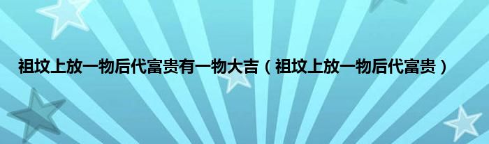 1、祖坟上放一物后代富贵,指的是在祖坟那里放一条蛇,如果蛇留下了,说明以后子孙后代一定会富贵无忧。