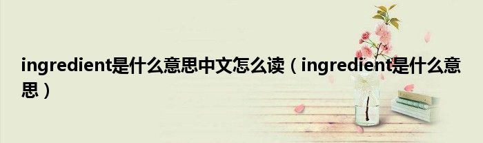 大家好,小常来为大家解答以上问题。ingredient是什么意思中文怎么读,ingredient是什么意思很多人还不知道,现在让我们一起来看看吧!