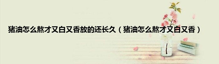 一、 猪油怎么熬才又白又香
