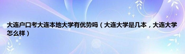 大家好,小常来为大家解答以上问题。大连户口考大连本地大学有优势吗,大连大学是几本,大连大学怎么样很多人还不知道,现在让我们一起来看看吧!