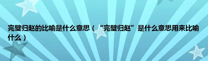 大家好,小常来为大家解答以上问题。完璧归赵的比喻是什么意思,“完璧归赵”是什么意思用来比喻什么很多人还不知道,现在让我们一起来看看吧!