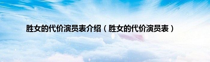 大家好,小常来为大家解答以上问题。胜女的代价演员表介绍,胜女的代价演员表很多人还不知道,现在让我们一起来看看吧!