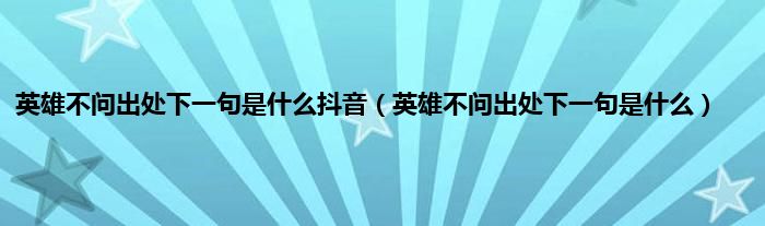 大家好,小常来为大家解答以上问题。英雄不问出处下一句是什么抖音,英雄不问出处下一句是什么很多人还不知道,现在让我们一起来看看吧!