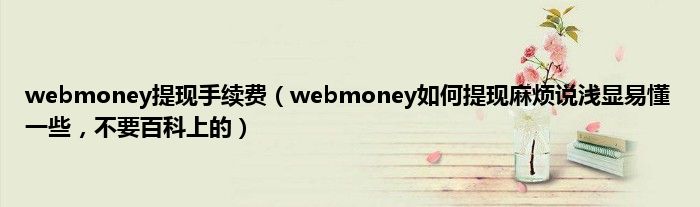 大家好,小常来为大家解答以上问题。webmoney提现手续费,webmoney如何提现麻烦说浅显易懂一些,不要百科上的很多人还不知道,现在让我们一起来看看吧!