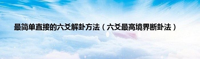 大家好,综合小编来为大家讲解下。最简单直接的六爻解卦方法,六爻最高境界断卦法这个很多人还不知道,现在让我们一起来看看吧!