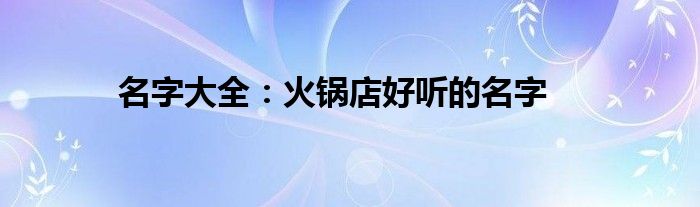 本文名字大全:火锅店好听的名字到此分享完毕,希望对大家有所帮助。