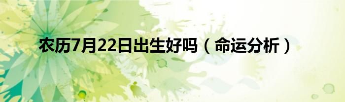 本文农历7月22日出生好吗,命运分析到此分享完毕,希望对大家有所帮助。
