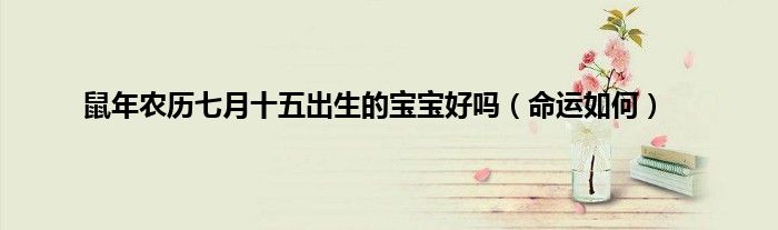 大家好,综合小编来为大家讲解下。鼠年农历七月十五出生的宝宝好吗,命运如何这个很多人还不知道,现在让我们一起来看看吧!